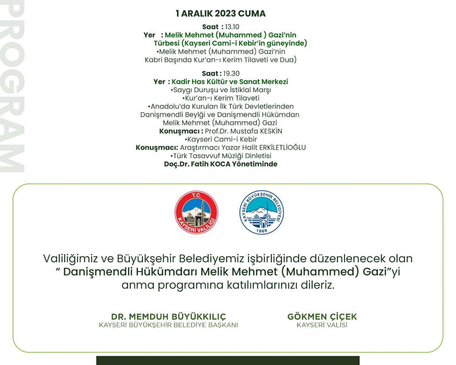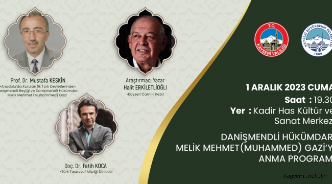 Prof. Dr. Mustafa Keskin, Araştırmacı Yazar Halit Erkiletlioğlu ve Doç. Dr. Fatih Koca’nın katılımlarıyla Danişmendli Hükümdarı Melik Mehmet(Muhammet) Gazi’nin hayatının anılacağı programa tüm halkımız bekliyoruz.
